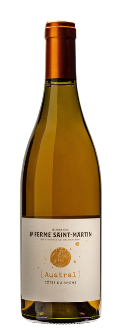 Zoals bij de orange wine van Saint-Martin: van druif roussanne mét schilinweking, voor het oranjeeffect, en clairette en grenache blanc zónder, voor het zonnig kruidige Zuid-Franse-witte-wijn-effect. Eindelijk een orange wine waarbij je niet beleefd ‘interessant’ prevelt, maar die je oprecht laat genieten, spannend en meeslepend lekker. Het beste van twee werelden.