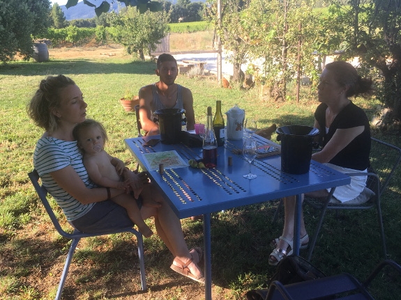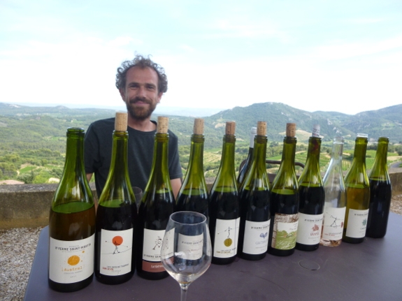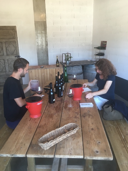 Ook gaan we langs Marie-Sophie Jullien, de zeven jaar jongere zus van Thomas van Ferme Saint-Martin. Zij heeft met haar man Thomas (oenoloog) sinds vorig jaar een eigen domein aan de zuidkant van de Ventoux bij Mormoiron: La Combe au Mas, ze heeft ons gevraagd om eerste jaargang te komen proeven. Prettige, toegankelijke wijnen, op de grens van vins nature, met name de twee witte bekoren, bij rood is gekozen voor vroeg oogsten, en dat proef je, wel mooi fris in zijn fruit, maar in de finale licht vegetaal, nét niet diepgaand. Niettemin: chapeau voor een eerste oogst. Tom Broekhuizen van Terroirwijn heeft al wat wit en rosé bij ze besteld.