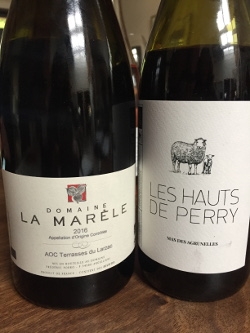 In stromende regen rond midi weer een uur westwaarts rijden, naar Argelliers , een koel, vergeten rafeltje Terrasses de Larzac, niet ver van Aniane. Fréderic Porro en Stéphanie Ponson hebben beslist progressie gemaakt de laatste jaren, de vinificatie (ook hier grappes entières) en vooral de opvoeding is verbeterd, zorgvuldiger geworden; bijna al het hout heeft plaatsgemaakt voor cementen cuves; en er wordt nu vlak voor de botteling een klein beetje (10 mg) sulfiet toegevoegd waardoor de wijnen aan precisie en stabiliteit hebben gewonnen zonder dat aan het vin nature-karakter afbreuk wordt gedaan. Veranderingen die lonen: waren ze nog niet zo lang geleden naarstig op zoek naar nieuwe klanten, nu –half mei- zijn alle witte wijnen 2018 al uitverkocht…. Wij proeven voornamelijk rood. Een fijne serie….: Mas Nicot 2018; onze dit jaar goed volle Indigène 2017 en de twee kostbare topwijnen: Hauts de Perry 2016 (gaan 900 flessen per jaar naar Troisgros) met veel noordelijk frisse syrah en de gevulde, complexe cuvée La Marèle 2016 die in sterrenrestaurants in Londen en Parijs wordt geschonken. Kijk ook op: www.masdesagrunelles.com.
