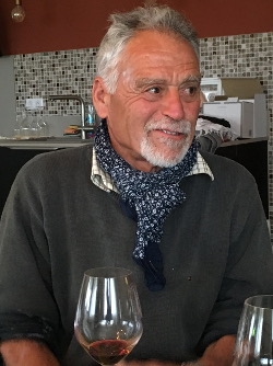 Over kleine weggetje naar de prachtige Romeinse Pont du Diable waar de vrijwel droog liggende Gorges de l’Hérault eindigen, aan de overkant links af naar Saint-Jean-de-Fos, rechtsaf via Montpeyroux naar Saint-Saturnin. Net daarvoor de nieuwe kelder van Malavieille: Mas de Bertrand waar de wijnen van hier en Montpeyroux (wijngaarden geërfd van oma en oudtante, veel stokken meer dan 100 jaar oud) worden gemaakt. Zo ook onze, onderhand fameuze Rock & Lune. Papa André ontvangt ons dit maal. Onvermoeibaar type… tot voor kort (hij is 74…) nog actief als gezichtschirurg, maar moest bij gebrek aan opvolger zijn cabinet sluiten. Hij is nu weer terug op zijn geboortegrond Saint-Saturnin, en bemoeit zich gelijk (weer) overal mee: gaat voor dag en dauw mee met de mensen in de wijngaard om ze te laten zien hoe een en ander moet bijvoorbeeld… De 2017 Rock & Lune is gisteren gebotteld, maar is al goed te proeven. Maatje groter dan 2016, vooral meer fruit en energie. Ook de allerbeste druiven die normaal in chique hout-cuvée gaan, zitten dit keer in de ‘eenvoudige’ Rock & Lune. Er is voorlopig voldoende van, gelukkig maar want in 2018 decimeerde meeldauw de oogst van de 100+ jarige carignan.