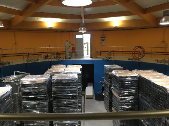 Verkwikt na goede en lange nachtrust (we hadden meest stille kamer van de toch rustige Auberge…) rijden we zaterdag eind ochtend met zowaar een winderig zonnetje en hogere temperatuur in kleine twee uur naar Peyriac-de-Mer, een de laatste jaren mooi opgeleefd karakteristiek oud Midi-dorpje in het maritieme deel van de Corbières . Aldaar een simpele maar uiterst smaakvolle lunch, de een gefrituurde inktvisjes en goed pittige ratatouille, de ander een bord superverse mosselen. Dan in vijf minuutjes naar Magali Roux, die na vertrek van Dominique Terrier drie jaar geleden, het op Domaine des Deux Anes alleen voor het zeggen heeft. Ze is vorige week nog aan haar voet geopereerd maar dat is niet te merken, ze leidt ons gewoon door de twee kelders, een met alleen grote RVS-cuves, de ander voor de houten vaten en foeders plus een nieuw cementen vat, lijkt op oeuf omblot maar dan niet echt helemaal eivormig want aan de boven- en zijkanten wat afgeplat. Ook hier toont 2018 zich goed en genereus, niet de gedrongen warmte van 2017, evenmin het strenge van 2016. De witte Dix Anes Blanc 2018 van tien verschillende druivensoorten en op het betonnen bijna-ei gerijpt is dit jaar erg fijn, open, zachtfris, iets voor de najaarsgids.