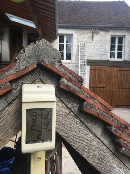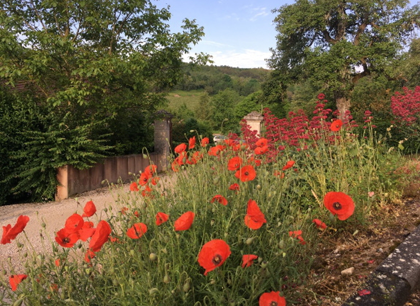Nu weer stukje terug, naar Domaine Henri Richard in Gevrey-Chamertin waar Guillaume Berthier, man van onze Sarah Bastien, ons opwacht. Hij doet zowel het biodynamisch wijngaardbeheer als de vinificatie. We proeven eerst 2018 van het vat, daarna 2017 (net) op fles. Ook het wit bekoort: de aligoté (uit Morey) en côte de nuits-villages blanc (100% pinot blanc, Brochon), alleen ze maken er niet veel van. Rood is over de hele linie uitstekend met als logische overtreffende trap 2017 Grand Cru Mazoyères-Chambertin. We eten/drinken nog wat met de onder de indruk geraakte buurtjes op avondzonovergoten terras in Nuits Saint-Georges, nemen afscheid, en koersen naar vaste, heerlijk rustige en koele stek in de Hautes-Côtes (http://www.lacombotte.com/).
