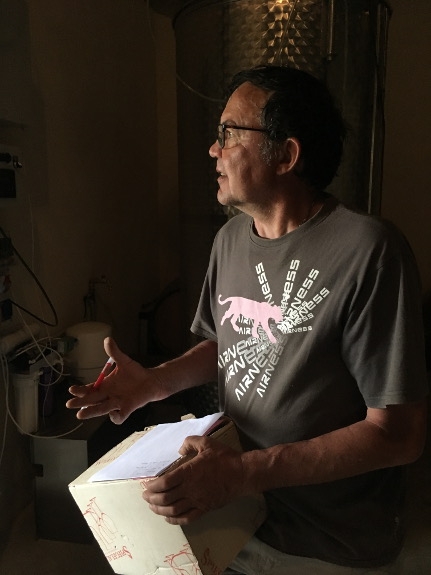 Tijd om te pauzeren is er niet, direct door naar jonge held Thomas Pico (Pattes Loup) in Courgis, 5km verderop. Hier is 2018 nog nauwelijks proefbaar, veel cuves zijn nog niet uitgegist, andere halfweg hun ‘malo’. Wel van fles onder meer de eerste mise (wij krijgen straks tweede) van de gewone chablis 2017 Vent D’Anges (stevig, op slot nog) en de prachtige (maar één vat gemaakt) Beauregard 2016. We hebben het nog even over de prijzen. Hij beseft dat die wel heel hard zijn gestegen, wijst op zijn lage rendementen (inderdaad ver beneden gemiddelde) en de grote verliezen in 2016 en 2017.