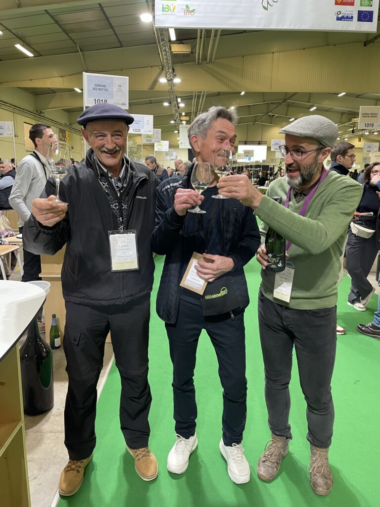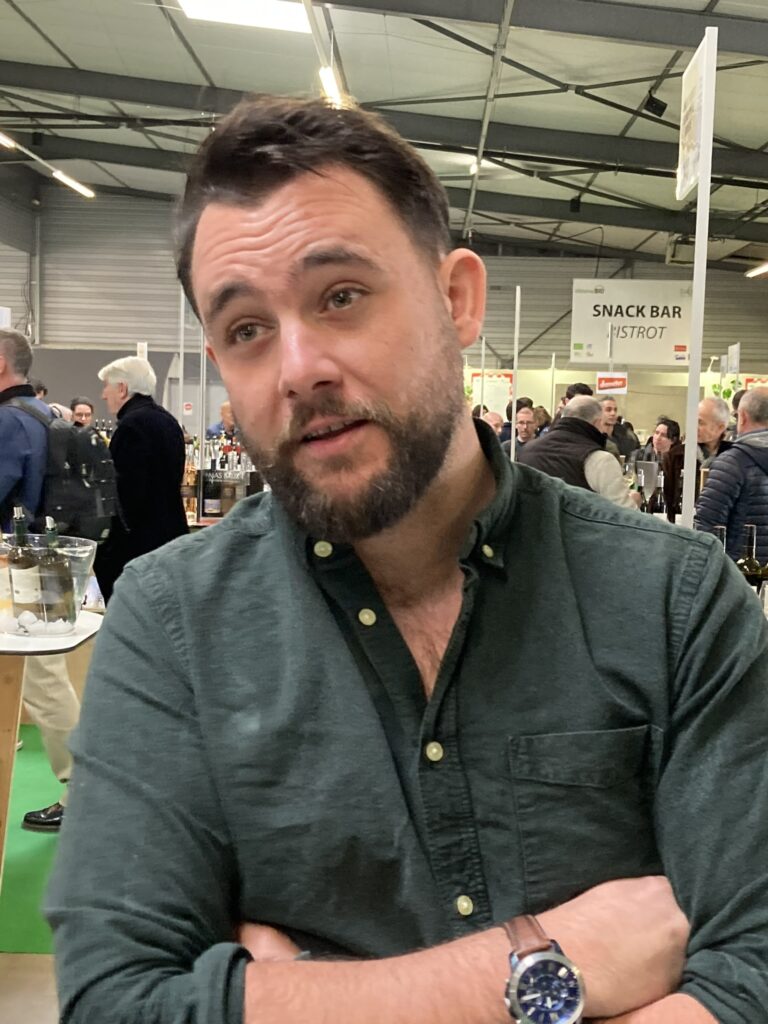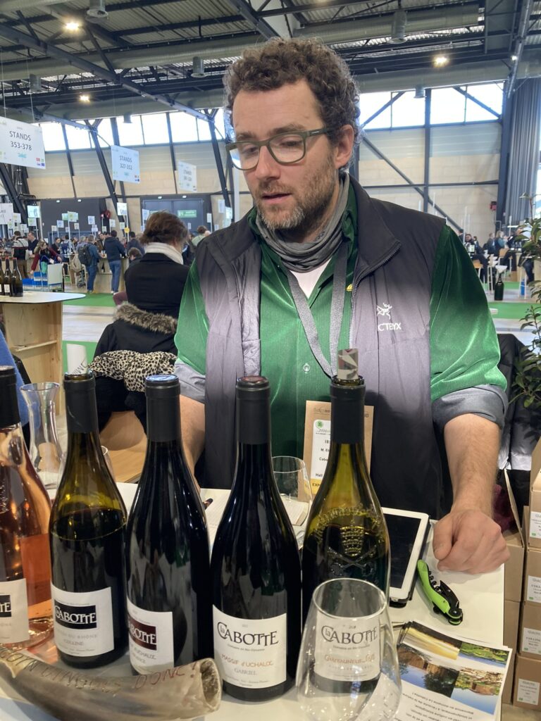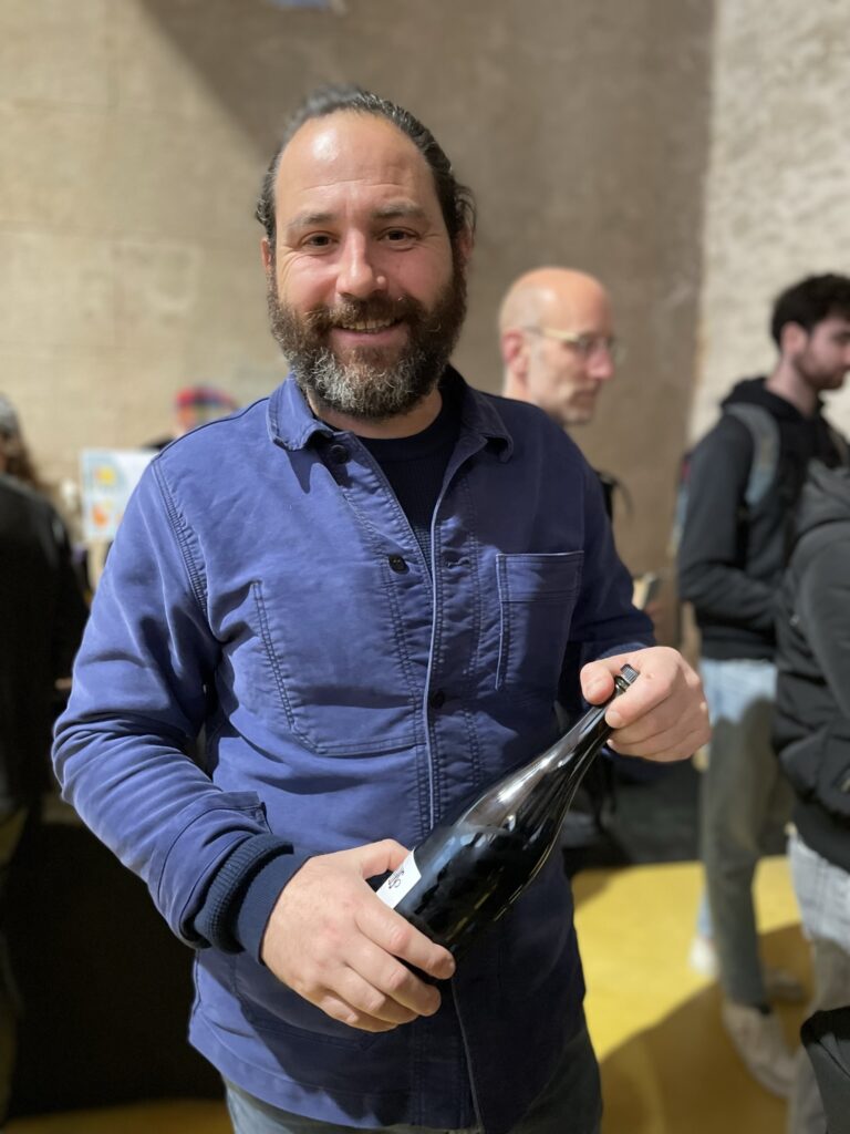 We blijven in B1 met Domaine Giachino (Savoie) waar enthousiaste zoon Clément ons 2022 (kleine oogst, 4 ha verlies door hagel in augustus) laat proeven, pa Frédéric is met Amerikaanse klanten bezig. Heerlijk speelse Savoie Blanc ‘Monfarina 2022… Van de Savoie naar Corbières binnen twee minuten, het kan allemaal op zo’n beurs. Magali Roux van Deux Anes is met un petit inconvenient thuisgebleven, nieuwe partner Christophe (zelf bio-nécociant) schenkt voornamelijk wijnen op fles (die we al kennen), op de nieuwe cuvée Riquita (grenache, mourvèdre, carignan) na, wat soepeler, lichter dan de Premiers Pas.