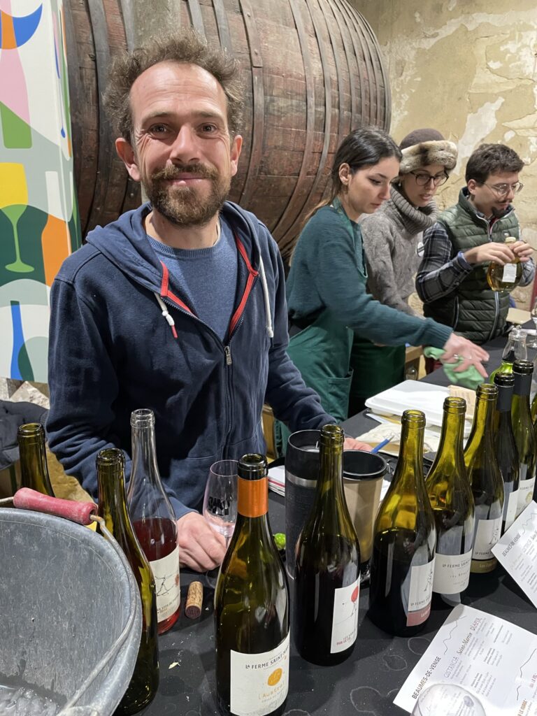 Ondertussen hebben we ook bijgekletst met Mathieu en Stéphanie Vieules van Domaine Philémon, andere ontdekking in Gaillac met de opwekkende Gaillac Blanc Perlé, zij hebben zelf geen stand, maar goed elkaar even gezien te hebben. Nog even naar Diane Cauvin van La Colombière (Fronton), waar we onder meer nieuwe (ook voormalige) leuke, makkelijke Fronton VINUM 2022 proeven die ze speciaal als instapmodel voor de export en Parijse wijnbars maken. En dan is het plots 15.00 uur, taxi François meldt zich, we moeten naar beurs twee: Le Vin de Mes Amis, dit jaar voor het eerst in hippe oude cultuurloods La Halle Tropisme, het wijnniveau is altijd hoog, maar organisatorisch soms een rommeltje, het is sowieso dringen aan de tafeltjes, de indeling en nummering van elke logica gespeend. We ontwaren gelukkig snel de stand van Thomas Pico (Pattes Loup) die ondanks de chaotische drukte voor zijn tafel, er uitermate relaxt bij staat, lijkt te genieten van zijn sterrenstatus en aandacht met name die van jonge, vrouwelijke sommeliers…