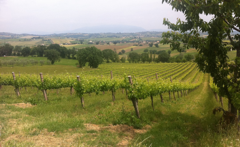 Mei 2014, Marc pelgrimeert te voet Bologna-Florence-Assisi-Rome, koopt in Assisi fles umbria rosso, Azienda Moretti. Bio. Die smaakt. Naar meer ook. Contact met thuisfront. Toeval (of niet) Tjitske blijkt ze net gezien te hebben op Vinitaly. Maar prijzen zijn te hoog. Twee dagen later, de (prachtige!) etappes Assisi-Spello, Spello-Montefalco in de benen, begint het te kriebelen, nu hij toch in de buurt is… Afspraak maken lukt; voor avond daarop; geen probleem hem (dan in klooster Spoleto) te komen halen.