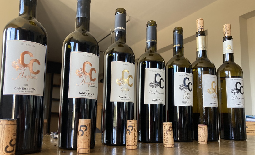 “Christian ‘Titi’ Estève die we nog nooit ontmoet hebben (wel zijn wijnen thuis geproefd) en als een van de grootste talenten van Corsica wordt gezien, en alom als joviaal en energiek wordt omschreven, lijkt (me) niet in goede doen. Slaperig, prikkelbaar, onderuit gezakt aan de keukentafel, wordt ook voortdurend vanuit de wijngaarden gebeld omdat een van de tractoren kuren heeft. Hij biedt me een chocolatine en espresso aan. En zegt: we gaan eerst de wijngaarden in, dan snap je de wijnen beter. Vlakker hier dan in Patrimonio, makkelijk te mechaniseren, druiven gingen tot een paar jaar geleden naar de coöperatie, deel van de wijngaarden is opnieuw geënt, in de jaren zeventig-tachtig zijn massaal internationale druiven (merlot, syrah, chardonnay) aangeplant, denkend dat daar de toekomst van Corsca zou liggen…. Nu –alles is in omschakeling naar bio– heeft hij juist allerlei oude ‘vergeten’ rassen staan: bianco gentile, cargagholu, genovese, minustellu… . In de kelder naast betaalbare (helaas grotendeels al uitverkochte) goede, modern (maar wel met natuurlijke gisten) gemaakte basiswijnen in drie kleuren ook volop experimenten, noviteiten, een heel gamma aan op kleine (Franse) amfora’s (zonder sulfiet) gemaakte wijnen, vooral de twee witte zijn prachtig. Oenoloog Michel Guagnini proeft ook mee, innemende man, hij adviseert ook (niet) toevallig drie van de vier andere domeinen die ik heb bezocht.”