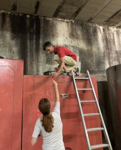 We zijn er gelijk bij mei 2019: eerste kleine oogst belooft veel maar is bijna op. Als we elkaar in januari 2020 weer zien blijkt de wijnen 2019 nog beter. Witte natuurwijnen op hun best, zit Dominique ongetwijfeld in de genen, zijn pa was de eerste bioboer in de Jura… Bij bezoek in 2022 blijkt dat hij ook rode wijnen (zonder sulfiet) kan maken: heerlijke glou-glou, de 2021 Corbières Rouge ‘Corps à Corps’ (syrah met snuf carignan). Hier zijn ook Jurawortels van Dominique proefbaar: licht, zacht, elegant, rins fruit, ongerept, bodem snel in zicht…