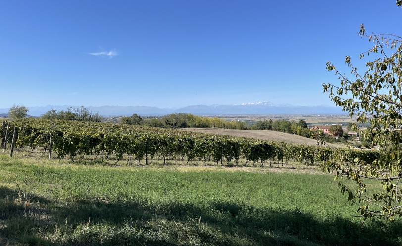 Zo vertrek ik half juni vanuit de vakantiestek in Bordighera voor een uitstapje 230 kilometer noordwaarts naar San Giorgio Monferrato. Het kost me moeite het strand, de zee en eigen luiheid achter me te laten… Maar wanneer ik van de snelweg het land inrijd word ik opnieuw gegrepen door de schoonheid van Piëmonte. De golvende heuvels met bossen, wijngaarden, graan en hazelnootbomen worden omzoomd door de witte Alpen die het landschap als een soort parelketting sieren. Bij Francesco stralen de wijngaarden van gezondheid en ruikt het land naar bloemen en kruiden en ook naar koeien, met zowel het stallige van mest als het zoete van melk. Ik realiseer me dat wijngaarden me nòg gelukkiger maken dan de zee…