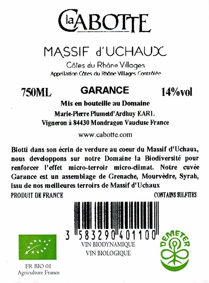 Côtes du Rhône Villages Massif d’Uchaux Garance 2020
