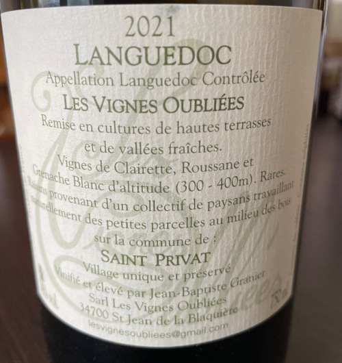 Blij mee! Eindelijk konden we wat krijgen van de witte Les Vignes Oubliées, onze Jean-Baptiste Granier maakt er maar een kleine duizend flessen/jaar van. Net als de fameuze rouge van 300-400m hoogte bij Saint-Privat.
