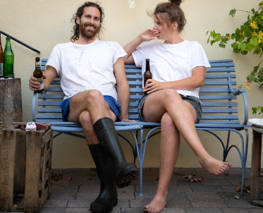 Het is hier ook genieten van het lekkere eten (asperges…) en gevarieerde drinken dankzij de ruime keuze aan Schoppenwein ofwel wijn per glas. Na veel wijnen geproefd te hebben en domeinen bezocht, is het leuk om tot de conclusie te kunnen komen, dat we met Heiner Sauer en Christine Bernhard (Janson-Bernhard) twee toppers in huis hebben. Doe er uw voordeel mee: prachtwijnen (werkelijk allerwegen aanbevolen, elke jaar hoger genoteerd in wijngids Duitsland, Gault/Millau), daarbij biologisch, meer dan decente prijzen….